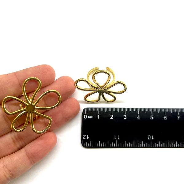 Flor, Sortija Ajustable, Stainless Steel