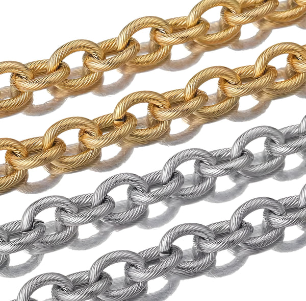 Ovalo, Stainless Steel, Cadena, Yarda/Rollo